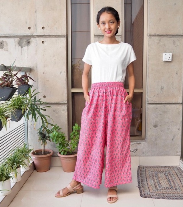 インド綿(プージャさんちのハンドブロック)ワイドパンツ