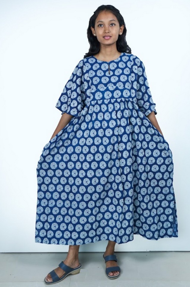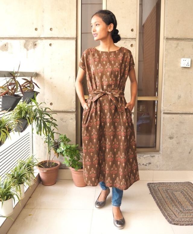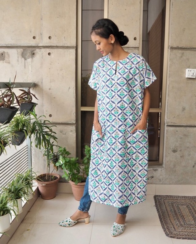 カフタンワンピース(ハンドブロックプリント)