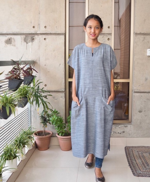 手織りコットン利用したワンピースです。 両脇にポケット付きです。 ★素材について コットン100% ★サイズ (平置き) 写真はMサイズです。 160cm,50kgが着てちょうど良いサイズです。 ★納期 ご注文をいただいてからお作りするため、2−3週間お時間を見ていただいております。 ★備考 ・全て検品を行っておりますが、縫製が若干あまかったり商品のサイズ・大きさなどが多少前後する場合がございます。ご購入の際はご了承の上、お買い求めお願い致します。 ・実際の色味よりスクリーン環境により異なって見えることがございます。 ・ご注文後のイメージ違い・サイズ違い等の商品交換・返品はお受けできませんので予めご了承くださいませ。