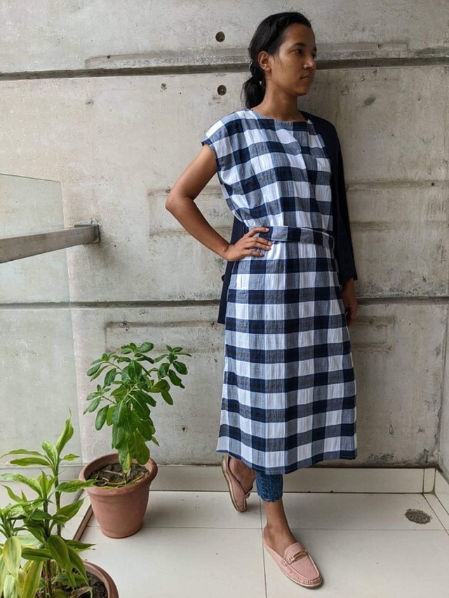 チェック柄のコットンを使ったワンピースです。 ゆとりのあるデザインですが、着ていただくとスッキリ見えます。 日常服としてもお出かけにも両用いただけます。 ★素材について コットン100% ★サイズ (平置き) 写真はMサイズです。 160cm,50kgが着てちょうど良いサイズです。(モデルは164センチ) 着丈 112cm 身幅 58cm サイドスリット 24cm ★備考 ・全て検品を行っておりますが、縫製が若干あまかったり商品のサイズ・大きさなどが多少前後する場合がございます。ご購入の際はご了承の上、お買い求めお願い致します。 ・実際の色味よりスクリーン環境により異なって見えることがございます。 ・ご注文後のイメージ違い・サイズ違い等の商品交換・返品はお受けできませんので予めご了承くださいませ。