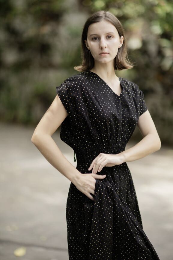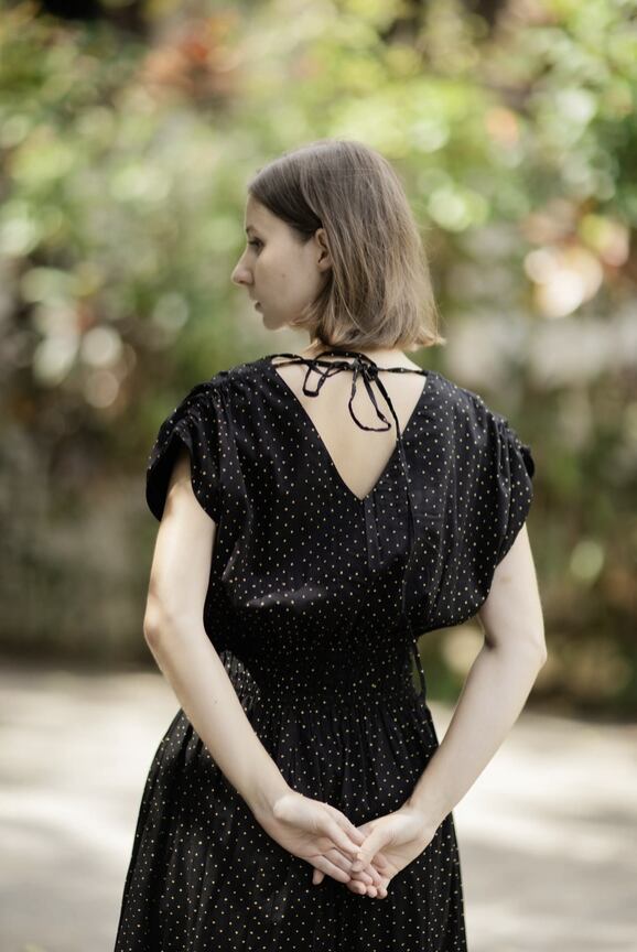 かなり手が混んでいるワンピースで熟練の縫製スタッフも1日に2着お作りするのが限界な商品です。 インナー付きです。