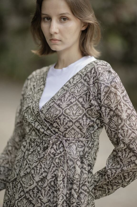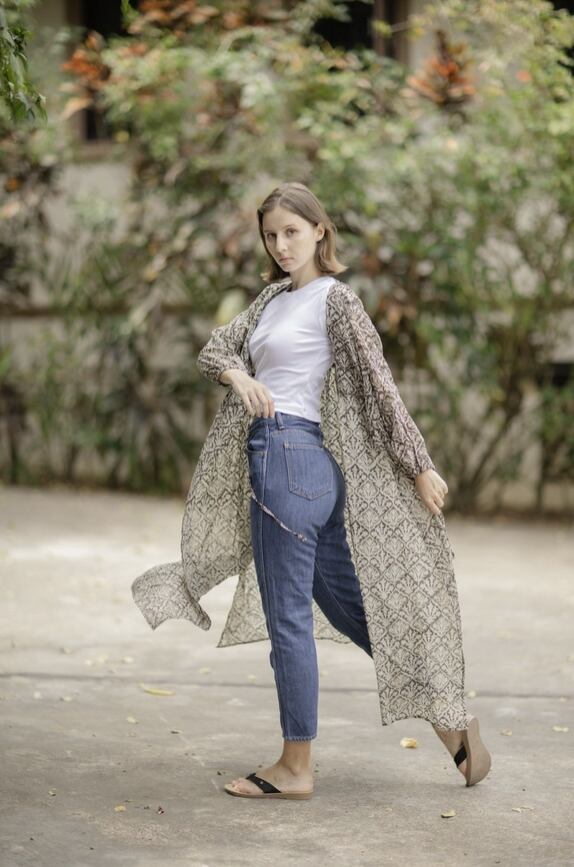 ワンピースとしても、羽織としてもどちらにもご使用いただけます。冬の間は中にタートルネックを入れて、夏はタンクトップの上にさらりと羽織っていただける商品です。