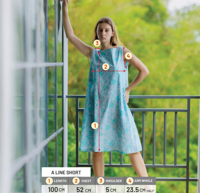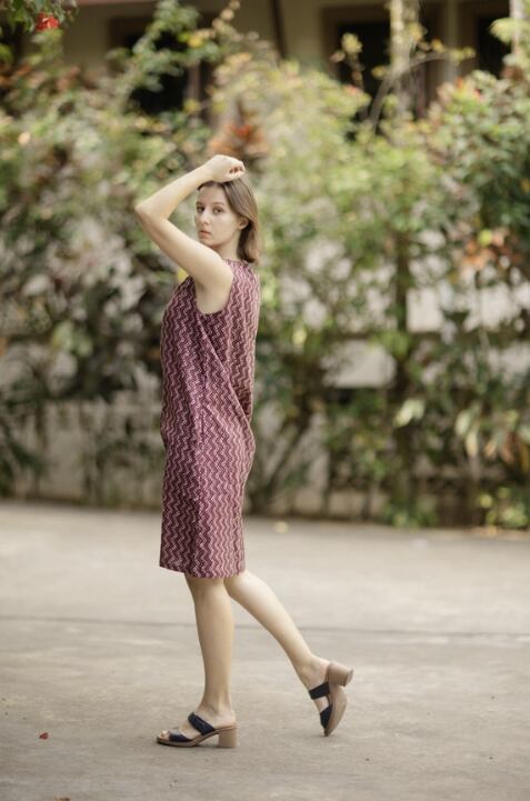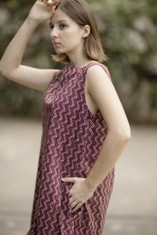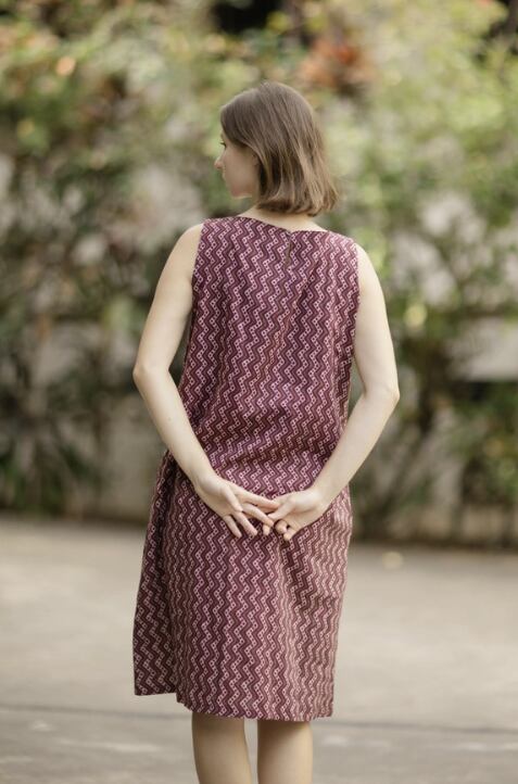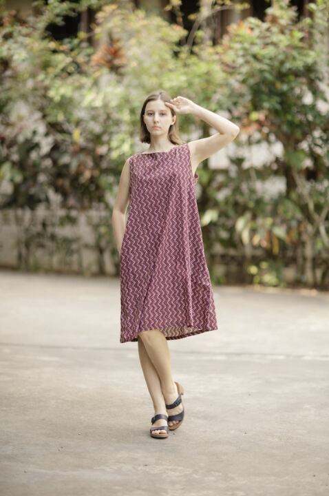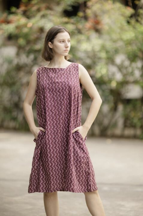 Aラインワンピース(インド綿スクリーンプリント)