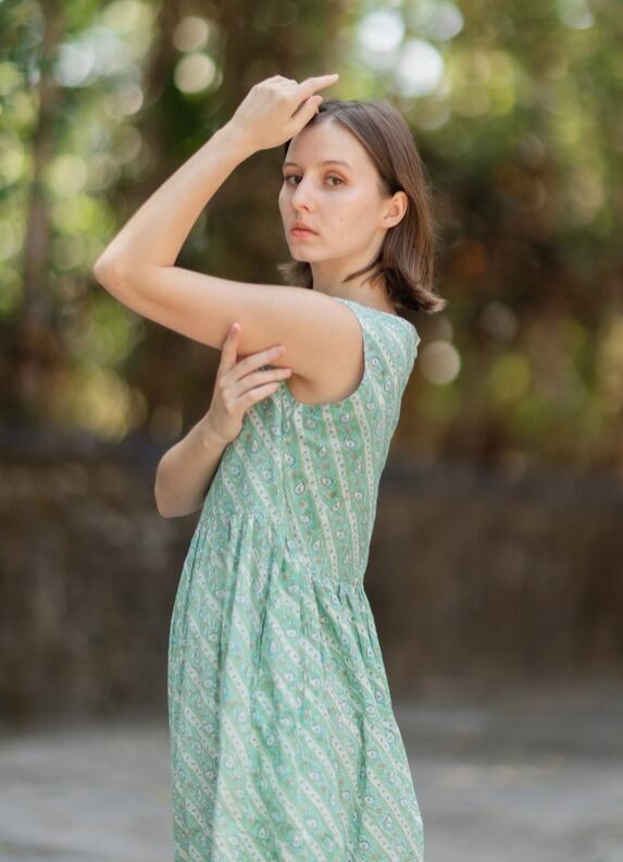 インドのジャイプールより、プージャさんの家の肌に優しいピグメント顔料を使ったハンドブロックプリント布を使用しています。(色はオリジナル)