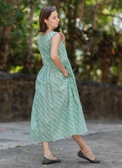 こちらの柄はインドに布のオーダーに行った際に見せていただいた木版の中で50年ほど前に作られたビンテージブロックのデザインをjonnoのセレクトした色で押していただきました。世界にたった一つの布柄です。