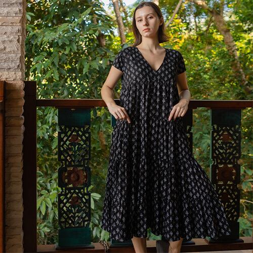 80/80番手の滑らかな手触りのファインコットンをふんだんに使ったティアードワンピースです。