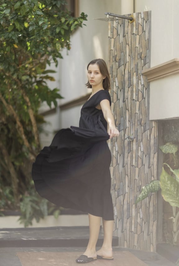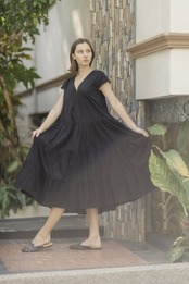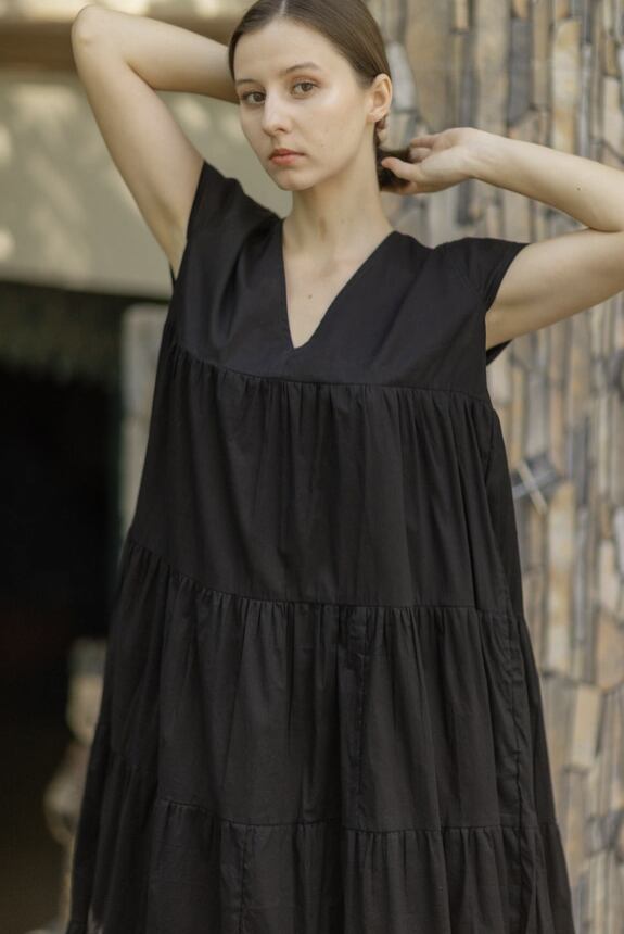 80/80番手の滑らかな手触りのファインコットンをふんだんに使ったティアードワンピースです。