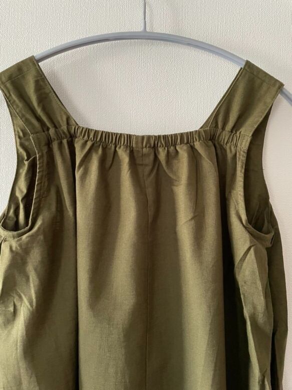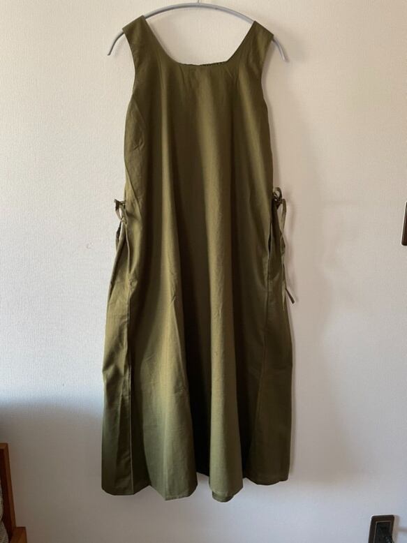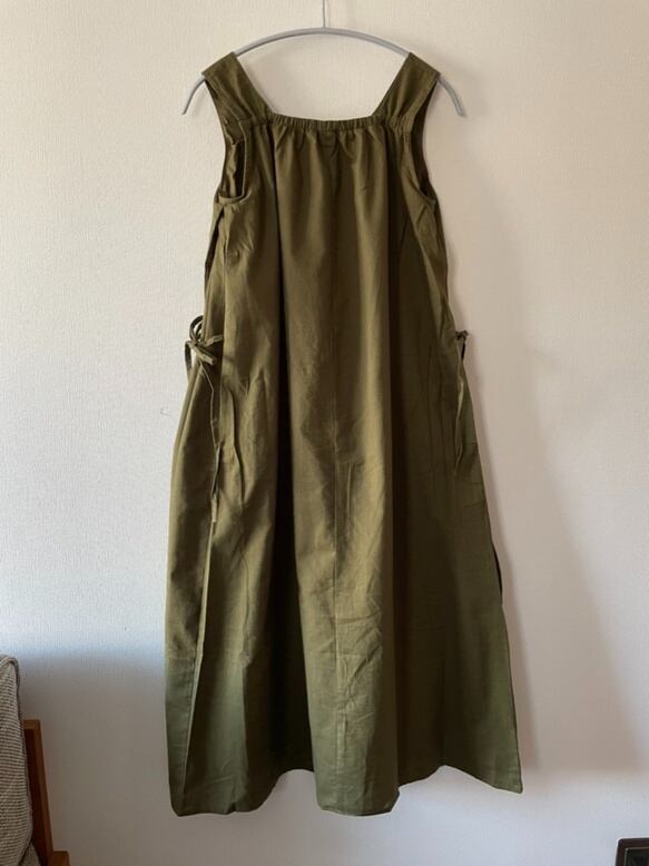 お色味がオールシーズン対応のモスグリーンなので、秋になってもカーディガンを羽織ったり、ジーンズを下に履いたりしてご使用いただけます。