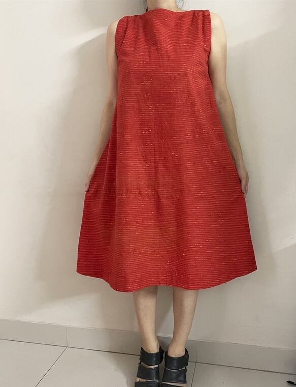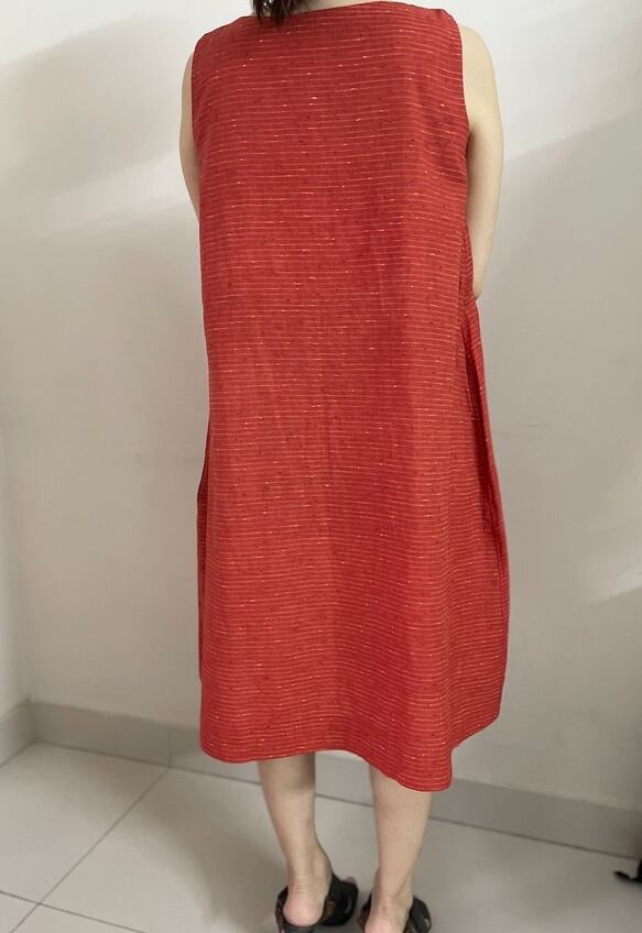 さらっと着れるハンドメイドのノースリーブ の膝下ワンピです。