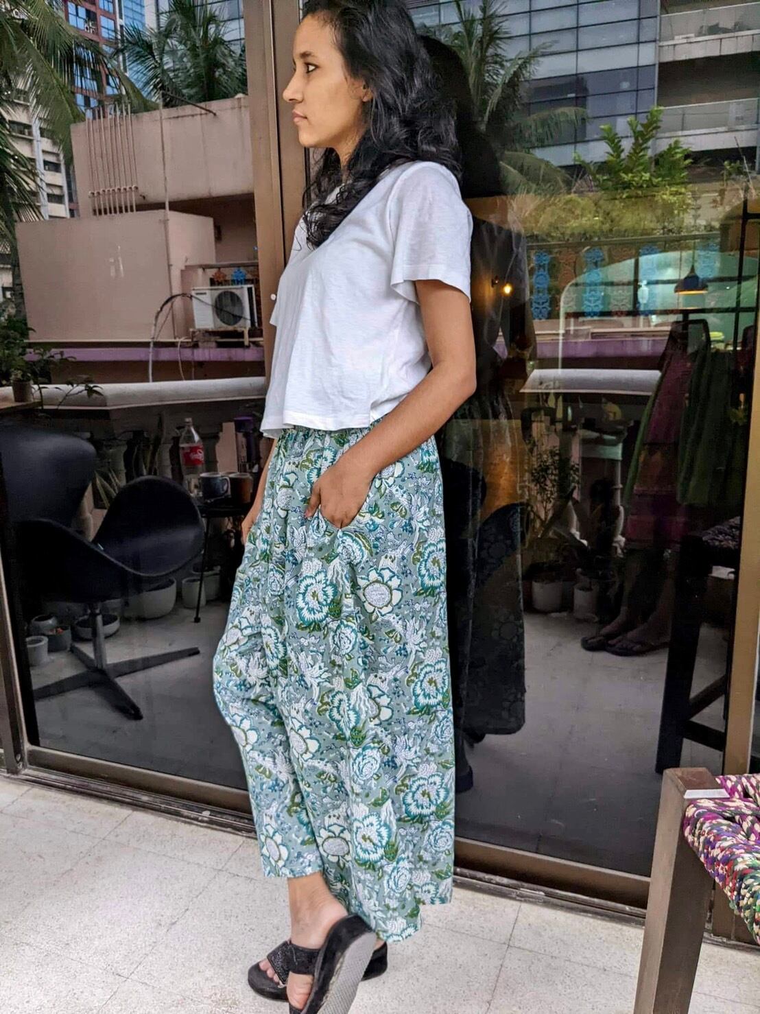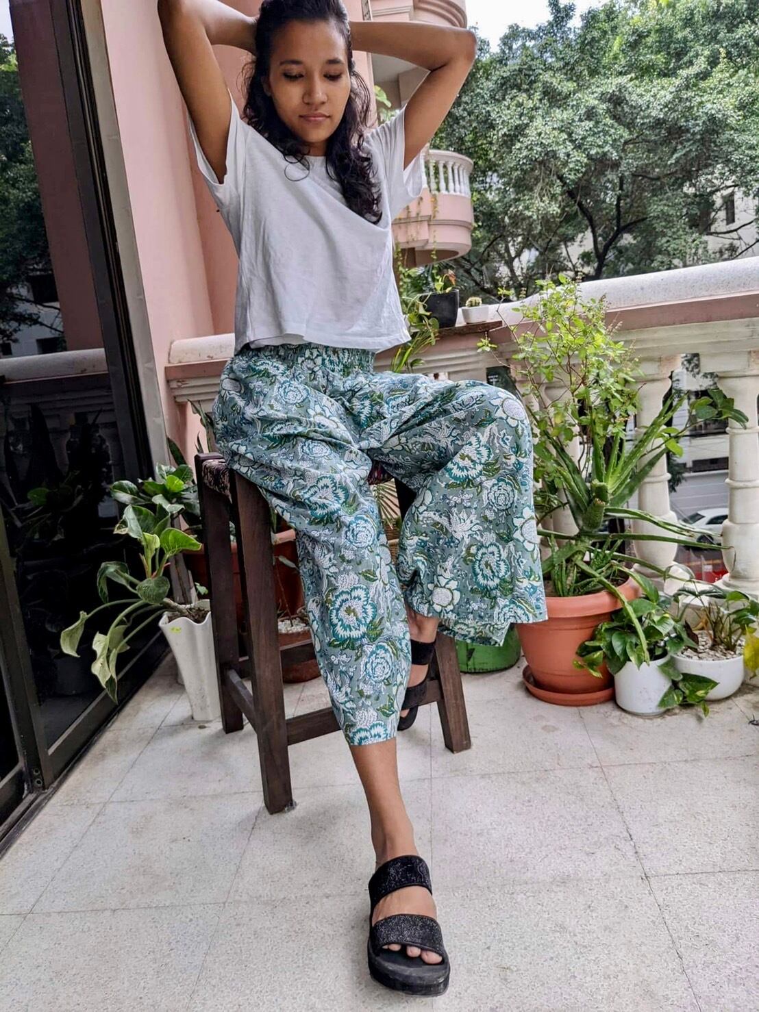北インドのジョイプールコットン(インド綿)生地で楽チンに履いていただけるけどキレイに見えるワイドパンツを作りました!