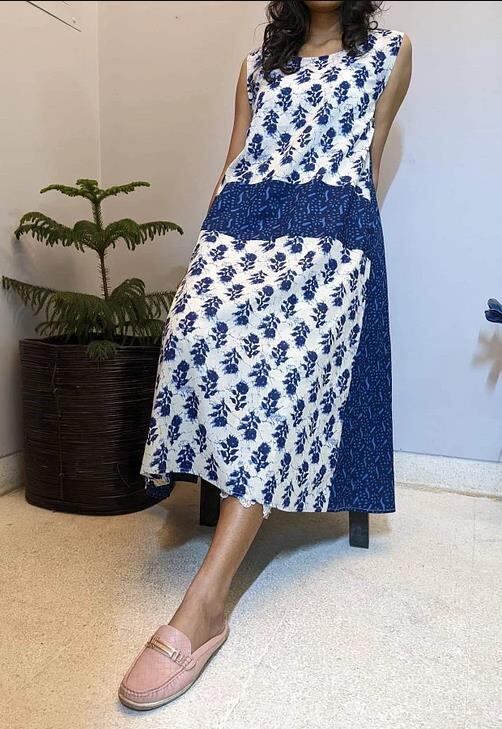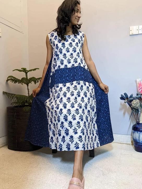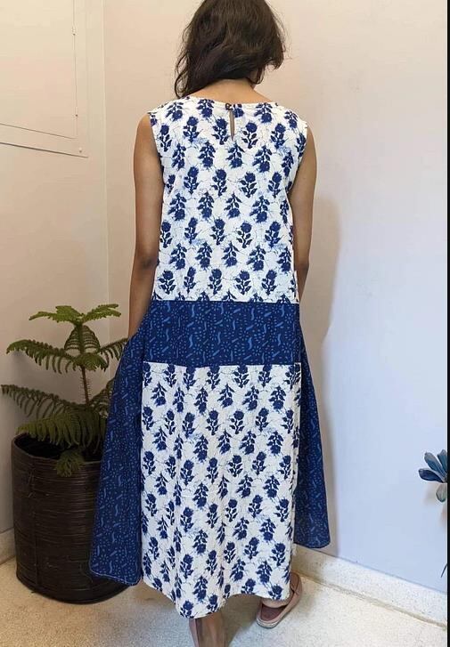 インド綿を使ったワンピースです。組み合わせる布の在庫の関係から1〜2着くらいの限定となります。