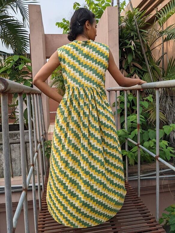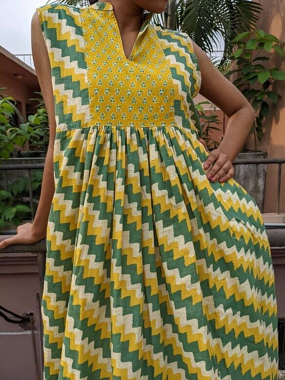 インド綿を使ったワンピースです。組み合わせる布の在庫の関係から1〜2着くらいの限定となります。
