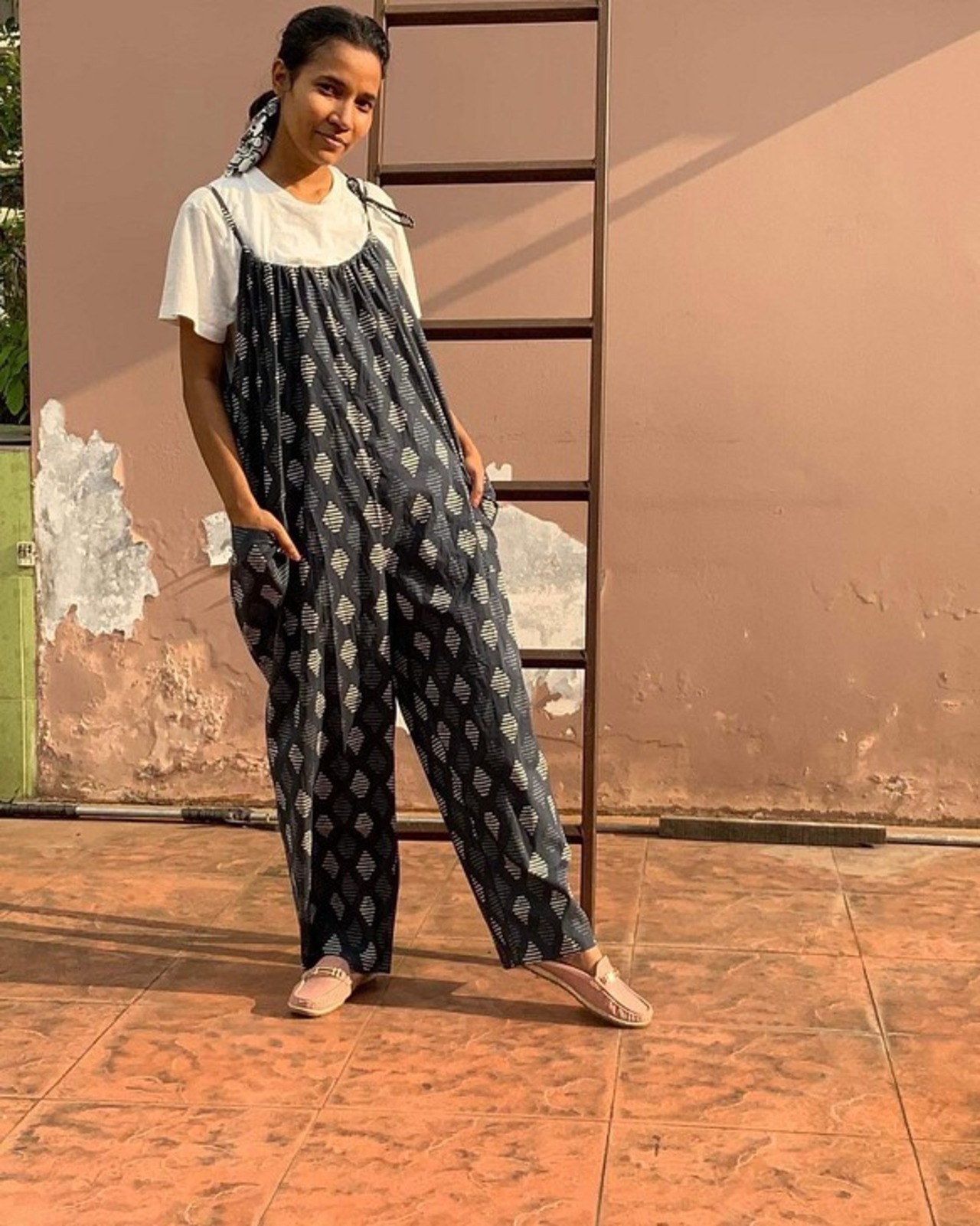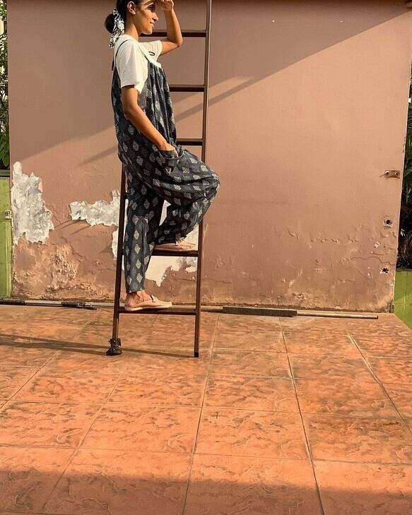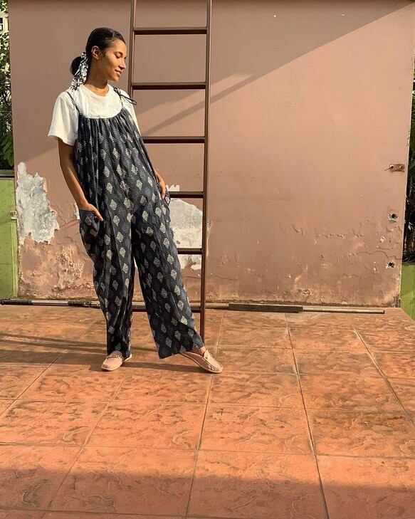 北インドのジョイプールコットン(インド綿)生地で楽チンに涼しく穿いていただけるサロペットをつくりました!