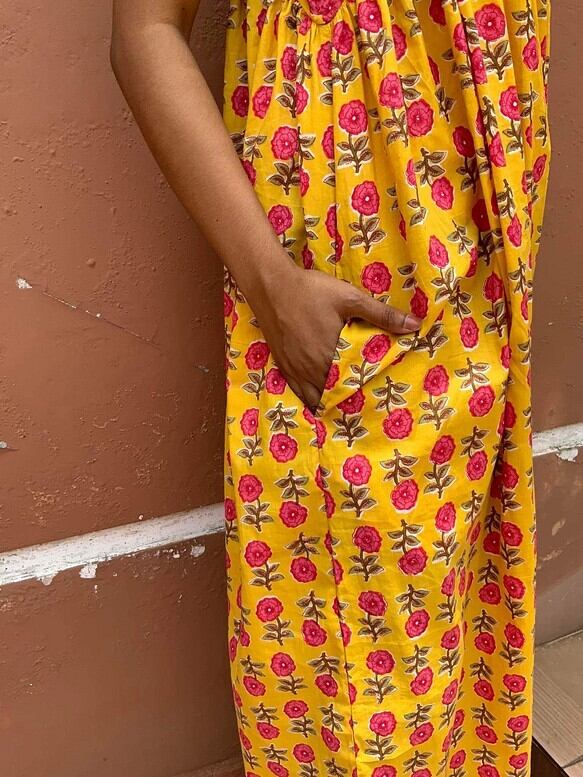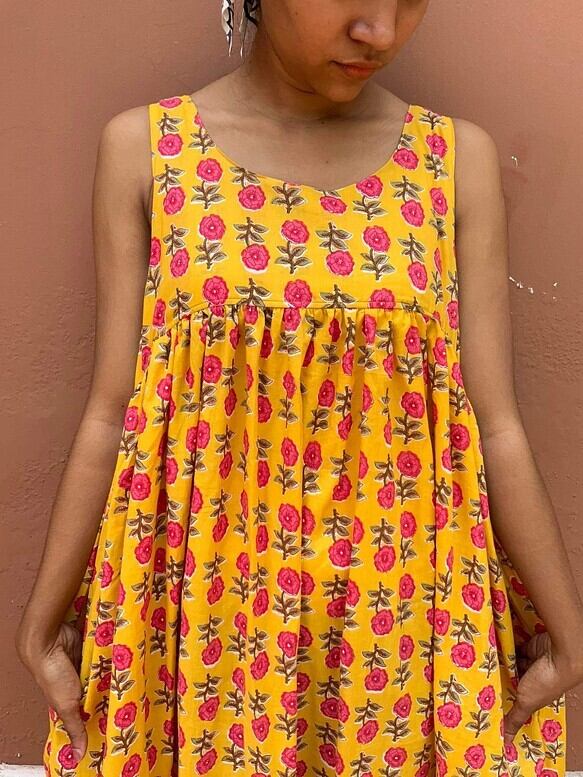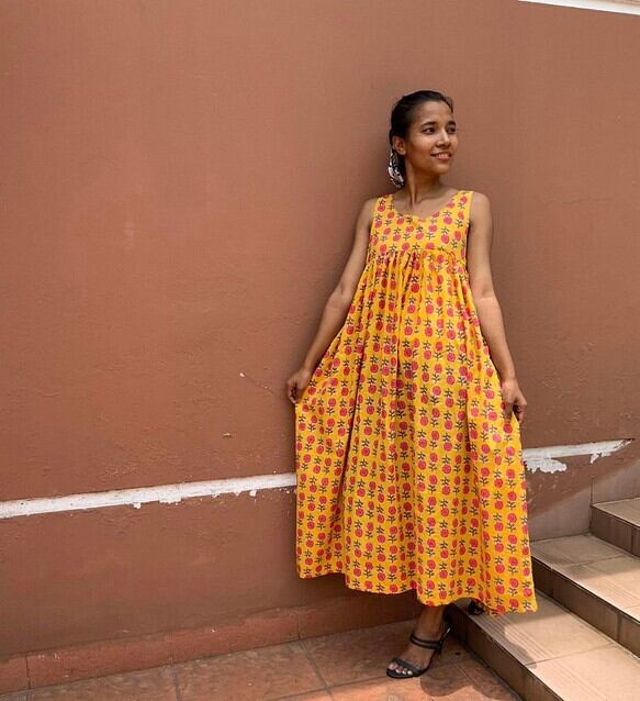 インド綿を使ったワンピースです。組み合わせる布の在庫の関係から1〜2着くらいの限定となります。