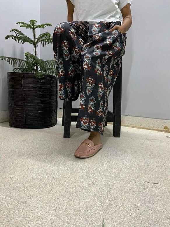 北インドのジョイプールコットン(インド綿)生地で楽チンに履いていただけるけどキレイに見えるワイドパンツを作りました!