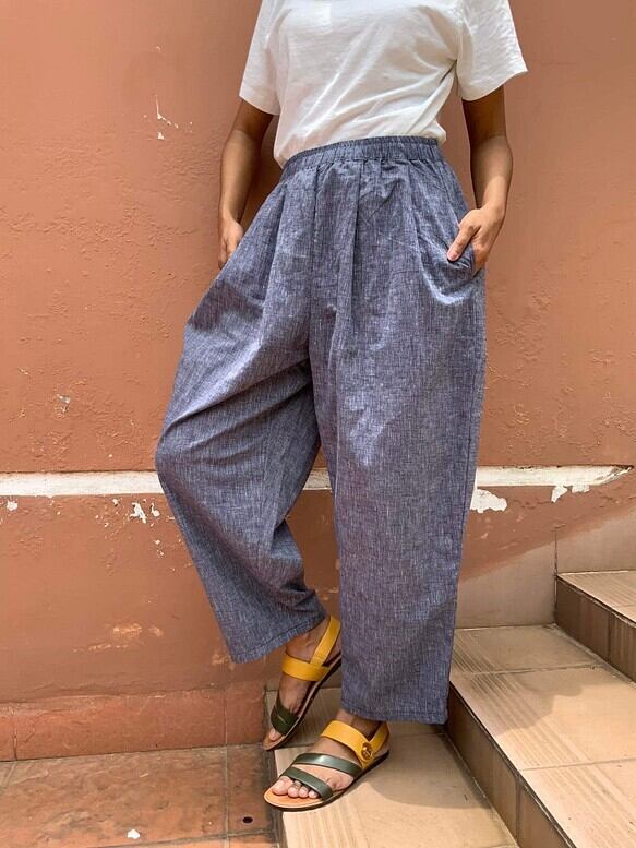 綿麻素材(ラミーコットン)のリラックスパンツです。