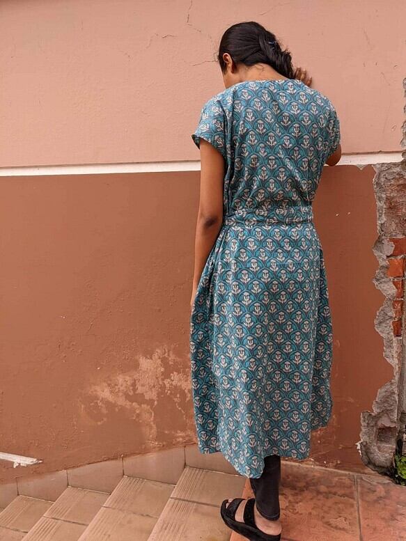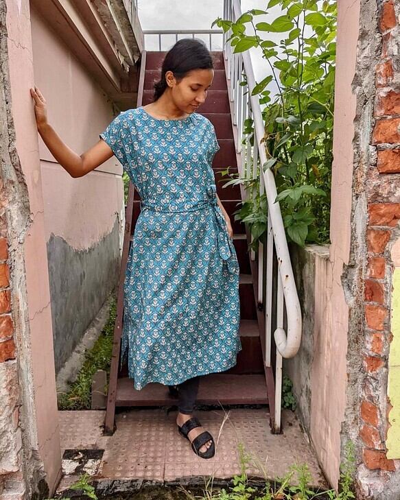 コットンリネンでおつくりしましたサイドスリットワンピースです。