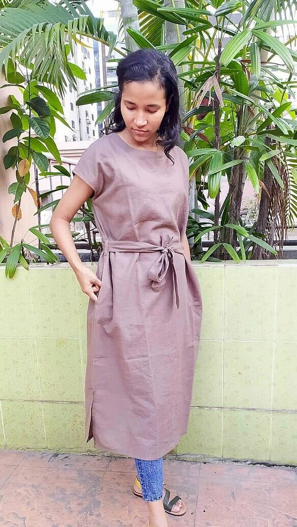 コットンリネンでおつくりしましたサイドスリットワンピースです。