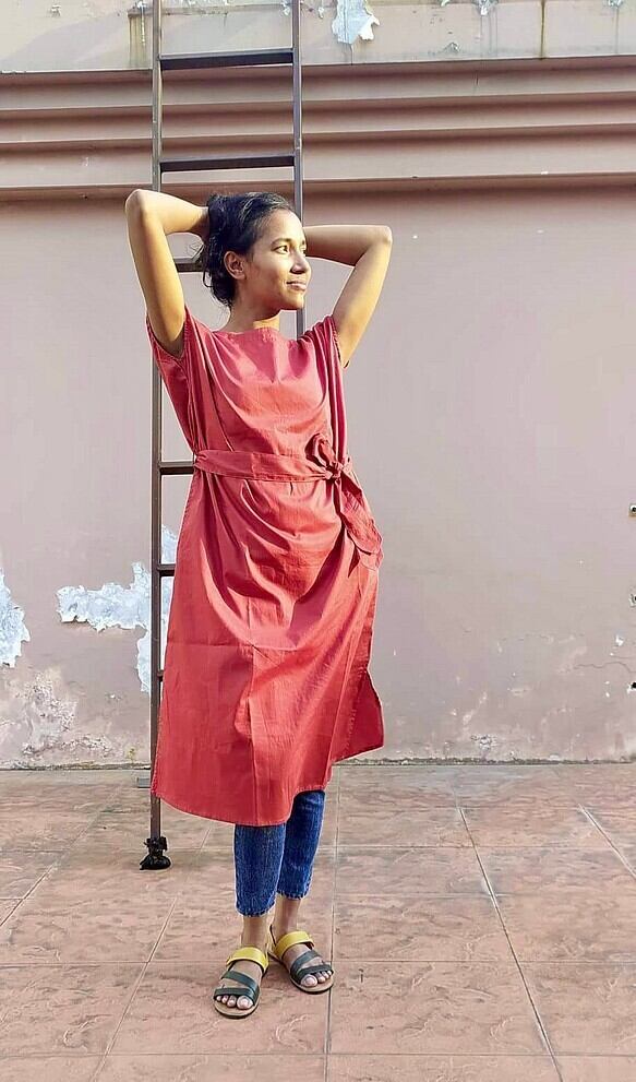 コットンリネンでおつくりしましたサイドスリットワンピースです。