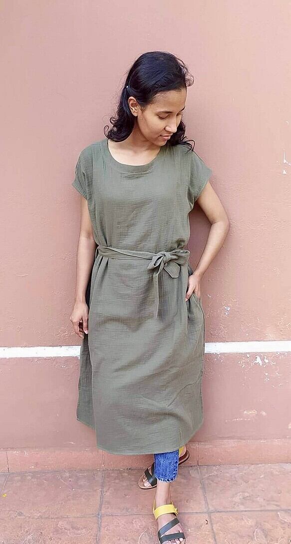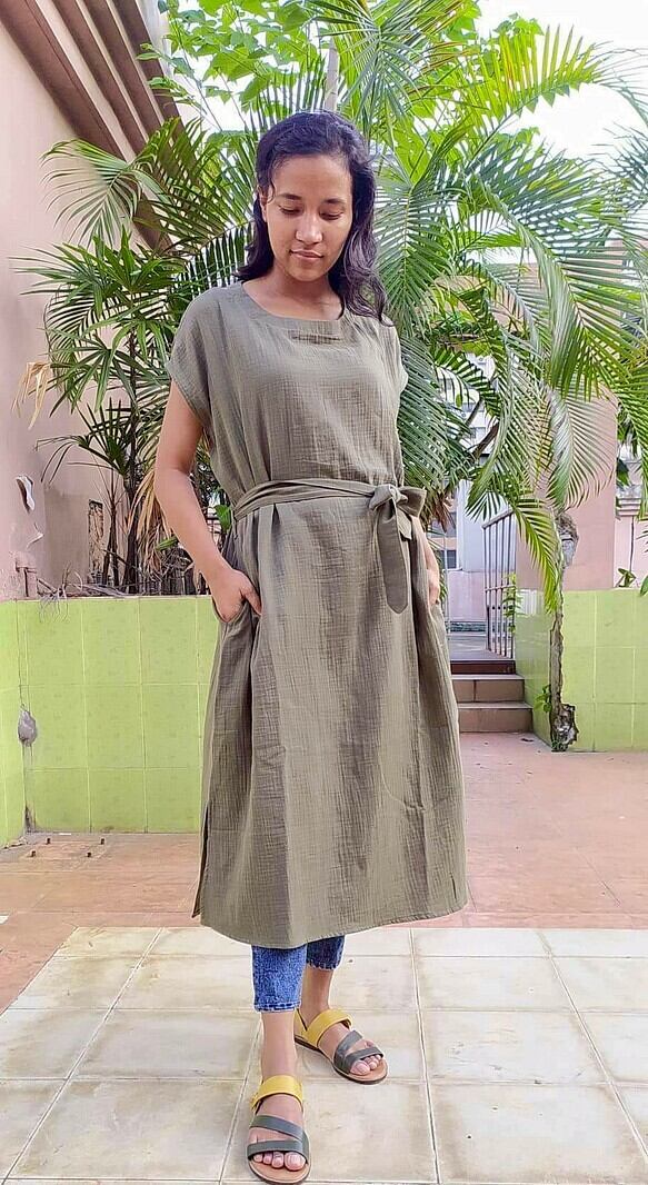ダブルガーゼでおつくりしましたサイドスリットワンピースです。