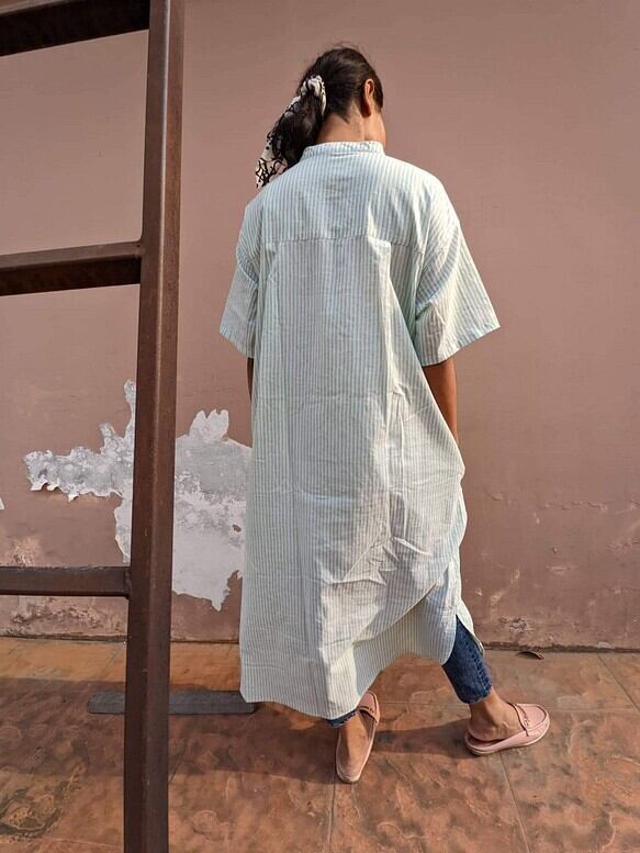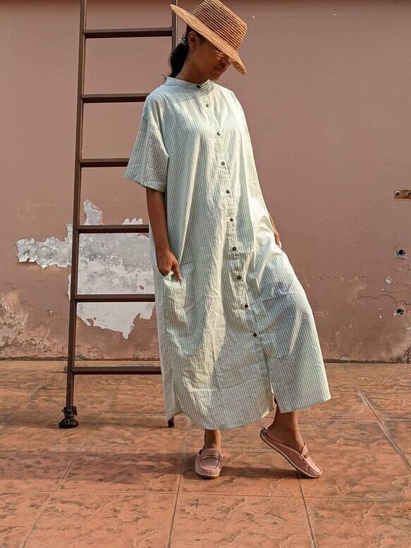 <1週間以内発送>インド綿ストライプシャツワンピース