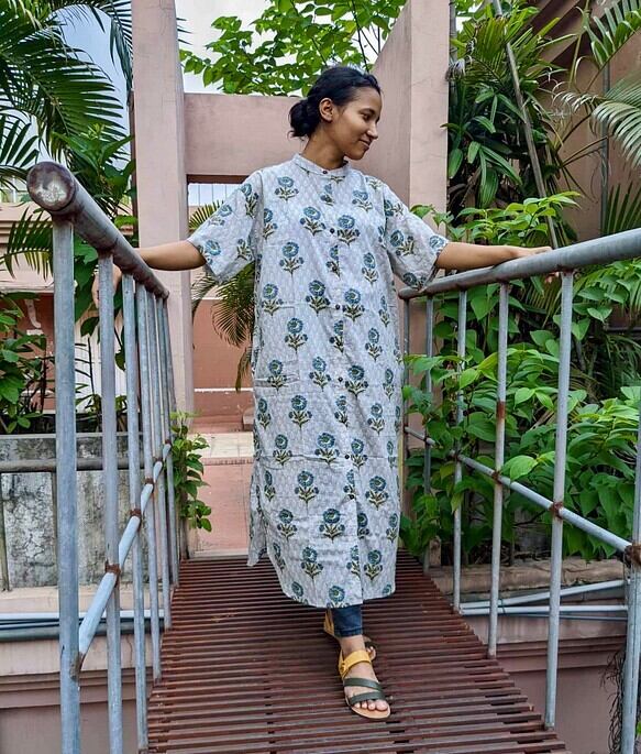 北インドジョイプール地方で作られたインド綿を利用した100%コットンの着心地の良いワンピースです。