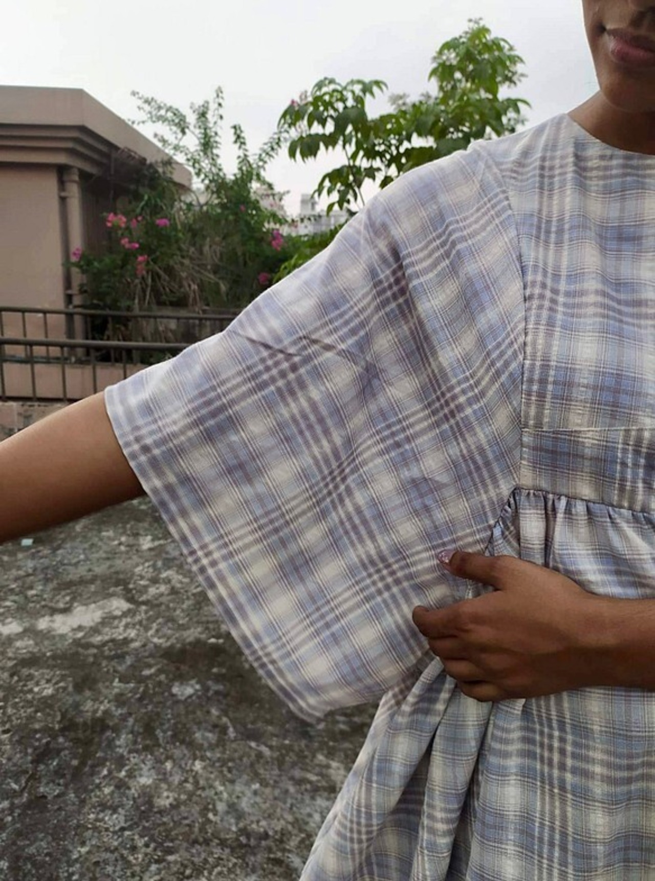 ゆとりのあるデザインですが、着ていただくとスッキリ見えます。
