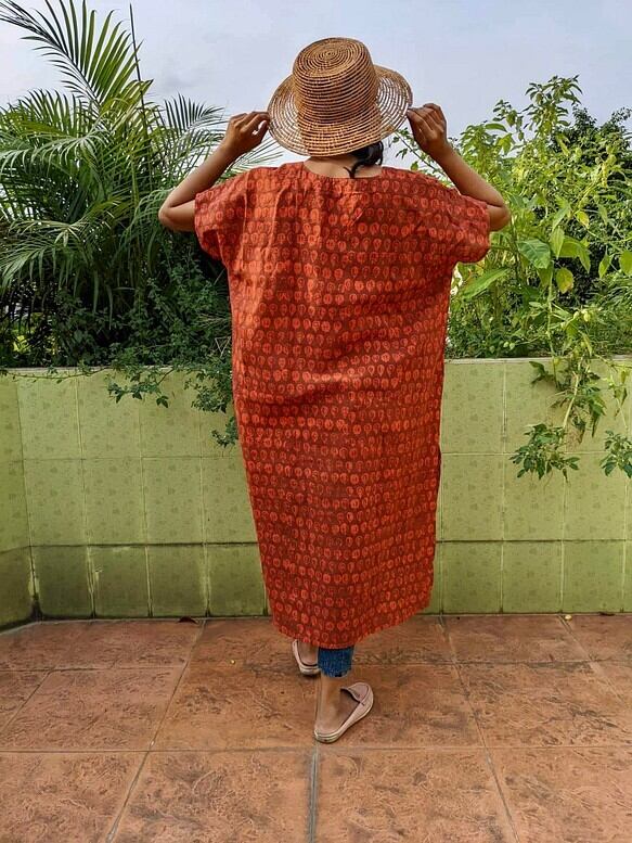バングラデシュ の草木染め(手染め)を利用したカフタンワンピースです。