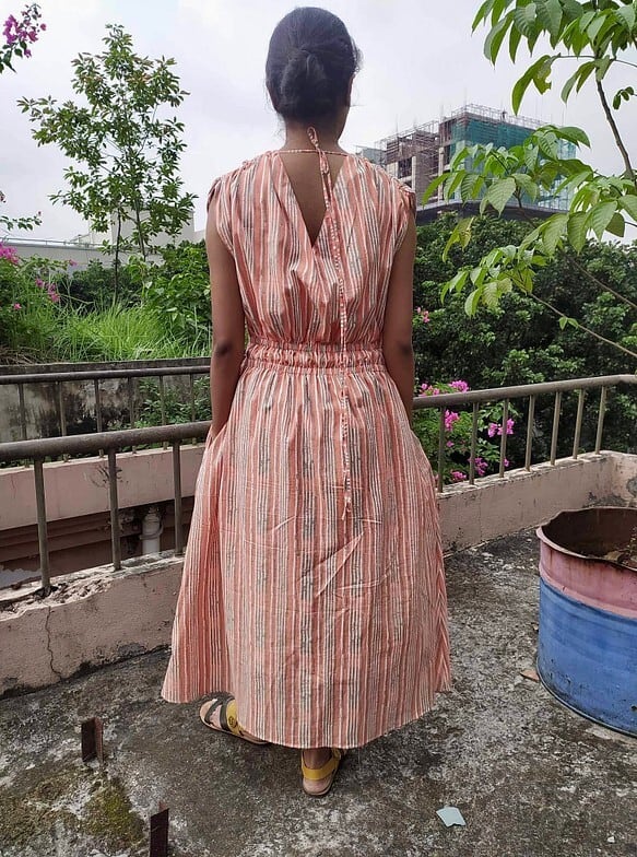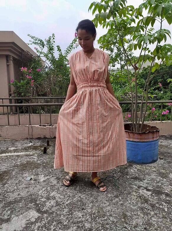かなり手が混んでいるワンピースで熟練の縫製スタッフも1日に2着お作りするのが限界な商品です。