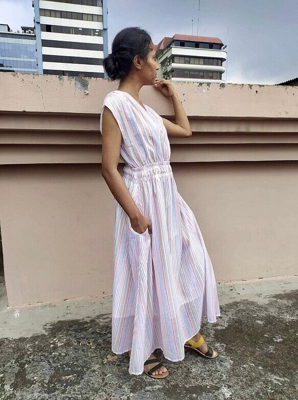 かなり手が混んでいるワンピースで熟練の縫製スタッフも1日に2着お作りするのが限界な商品です。