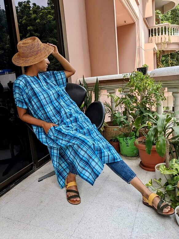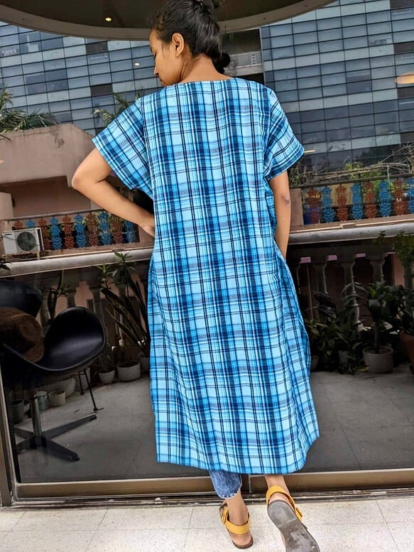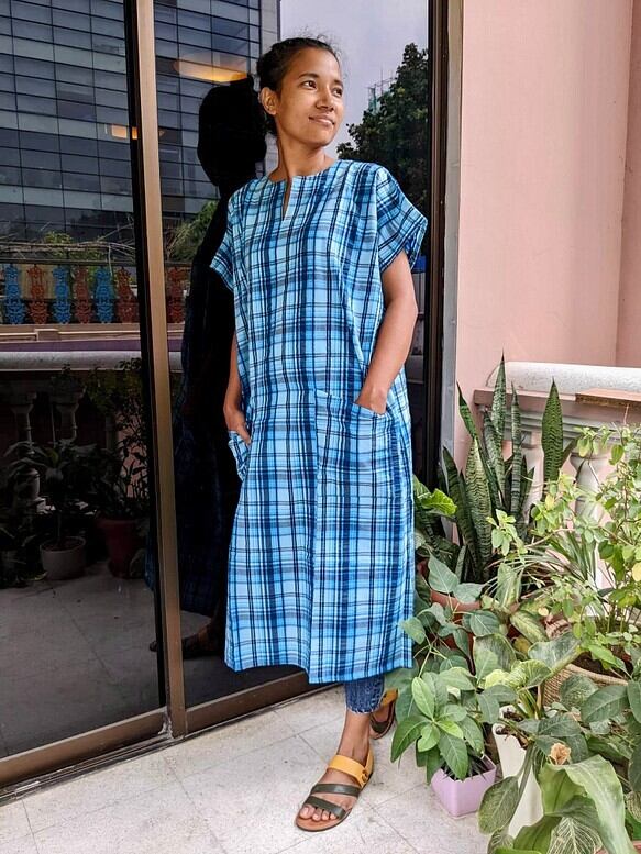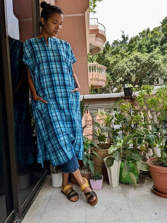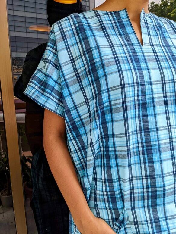 立体感のあるサッカー生地を利用してお作りしましたワンピースです。