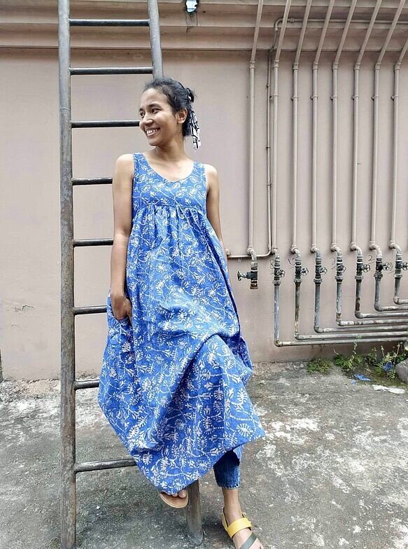 草木染めでおつくりしましたサイドスリットワンピースです。