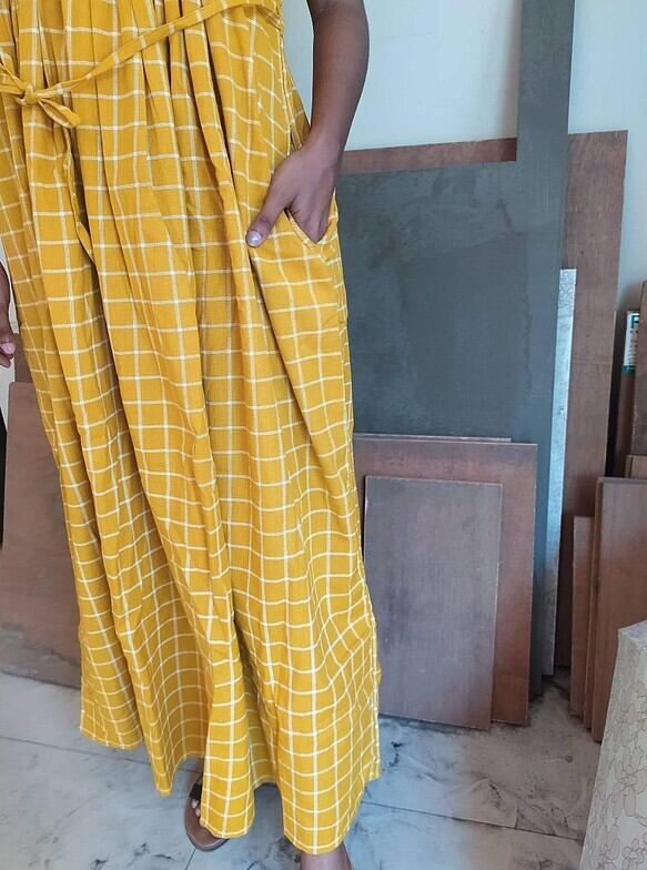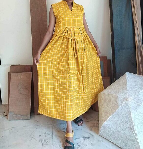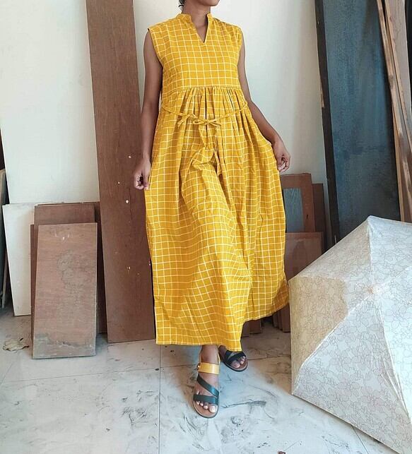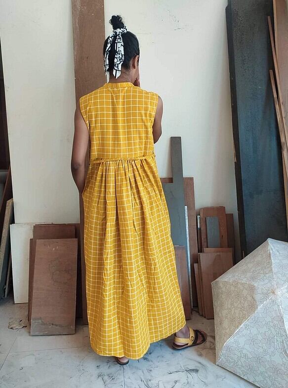インド産コットンリネンギャザーワンピース