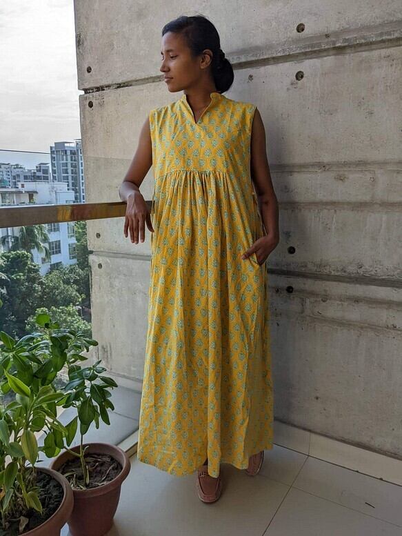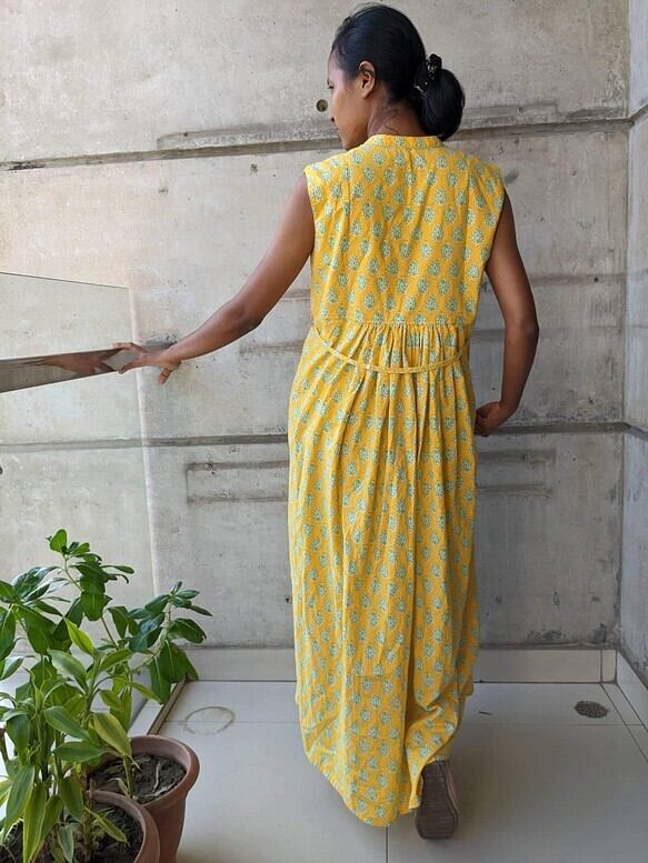 インド綿を使ったワンピースです。組み合わせる布の在庫の関係から1〜2着くらいの限定となります。