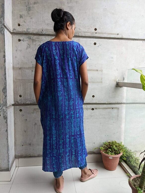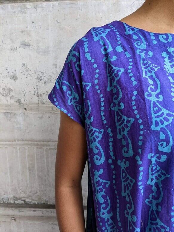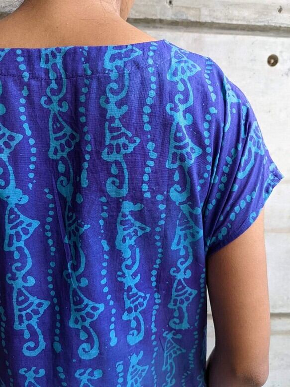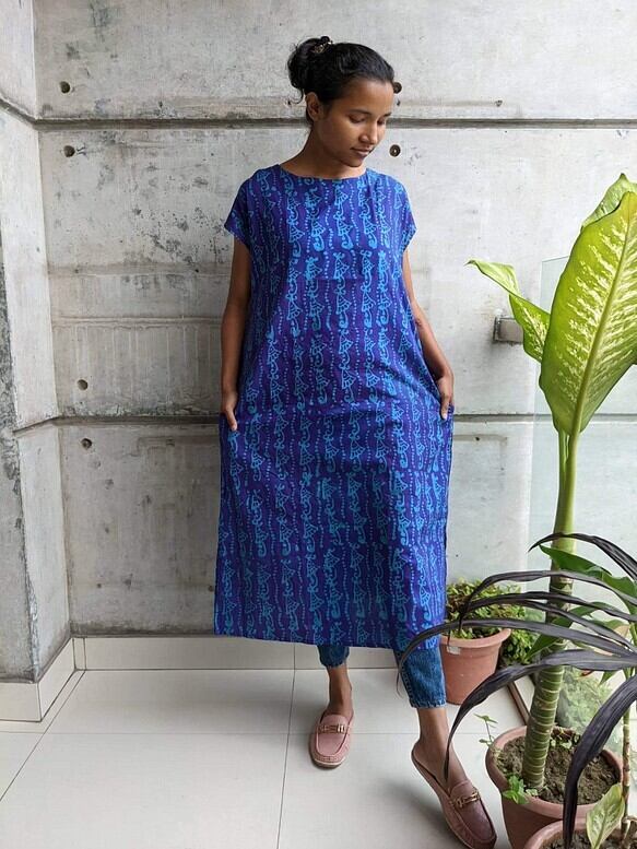 バングラデシュ の手染め(蝋つけ)を使ったワンピースです。