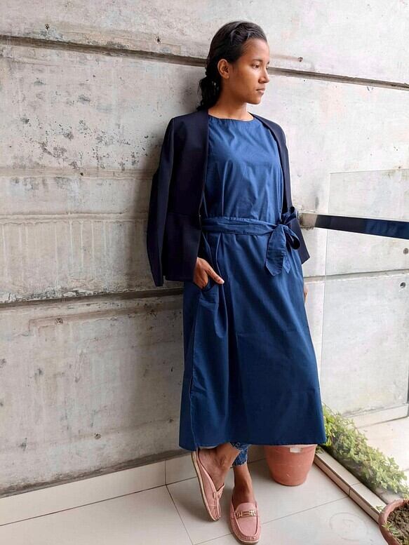 サイドスリットワンピース ファインコットン