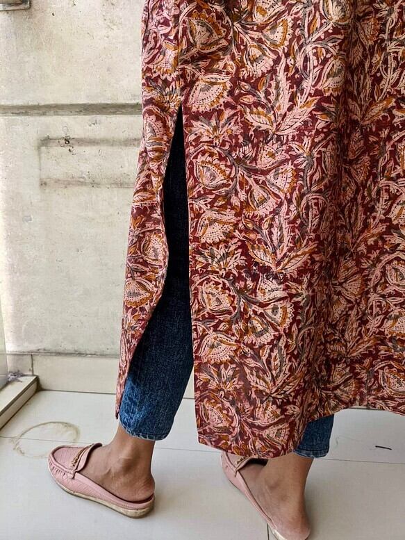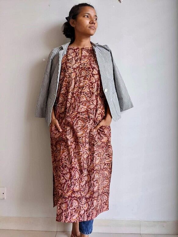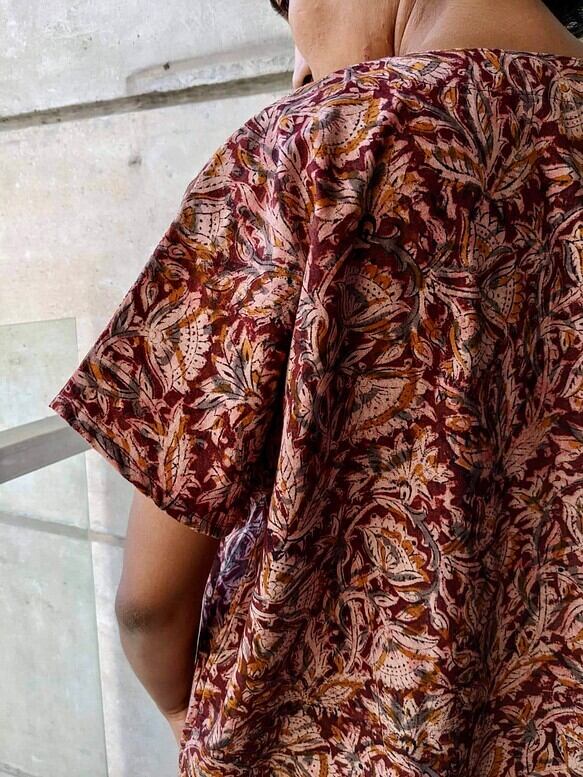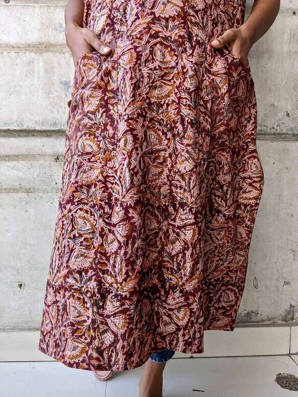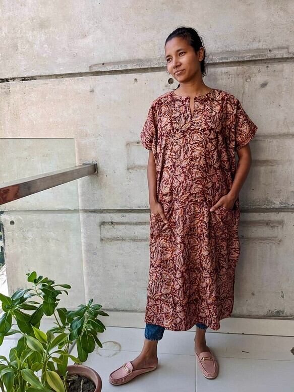カラムカリ ハンドブロックプリントカフタンワンピース