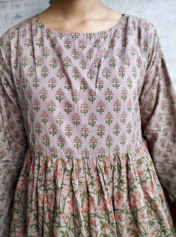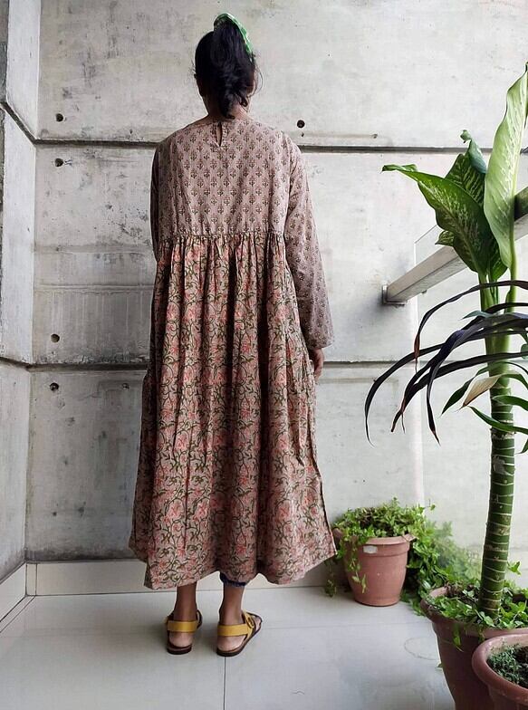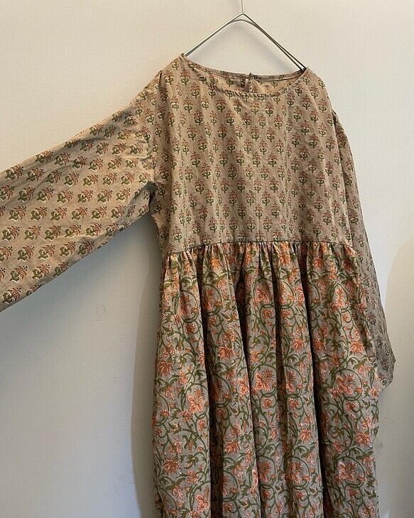 <2022秋冬新作/数量限定>インド綿柄違いギャザーワンピース