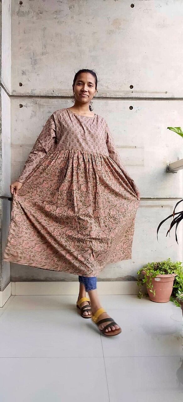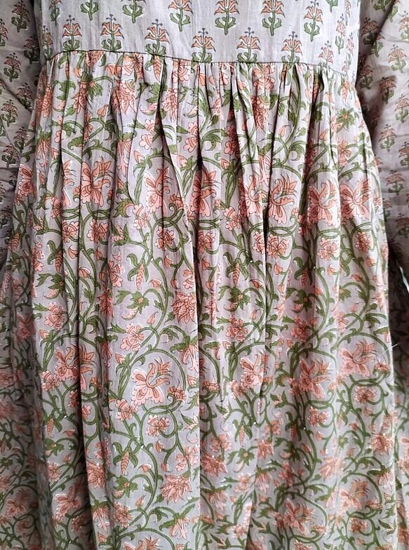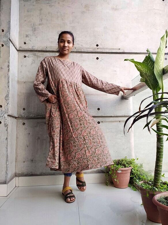 同じ色調の違う柄のインド綿を合わせておつくりしたワンピースです。着画は改めて追加します。