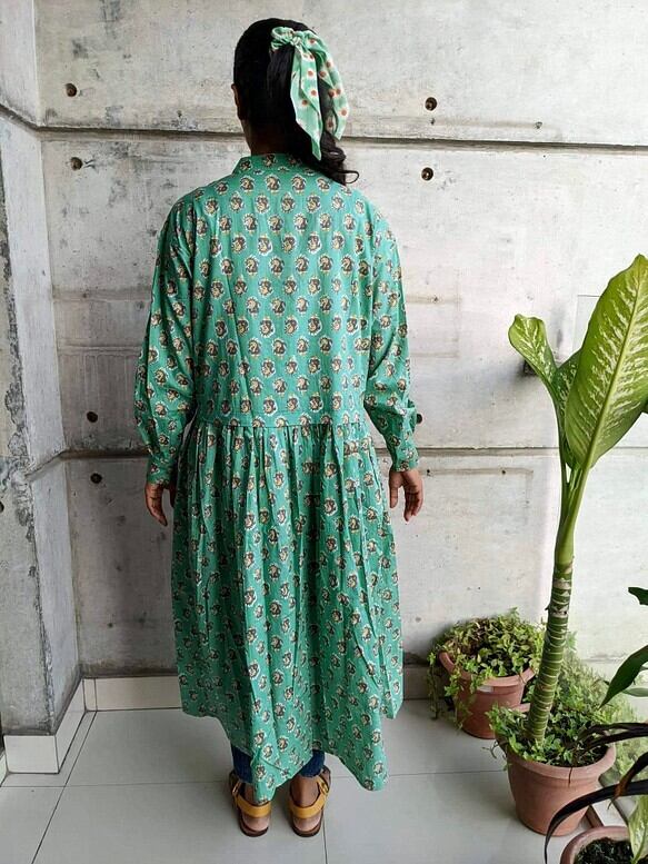 インド綿でおつくりしたタック入りシャツワンピースです。