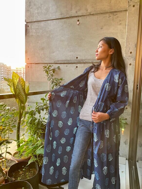 ワンピースとしても、羽織としてもどちらにもご使用いただけます。冬の間は中にタートルネックを入れて、夏はタンクトップの上にさらりと羽織っていただける商品です。