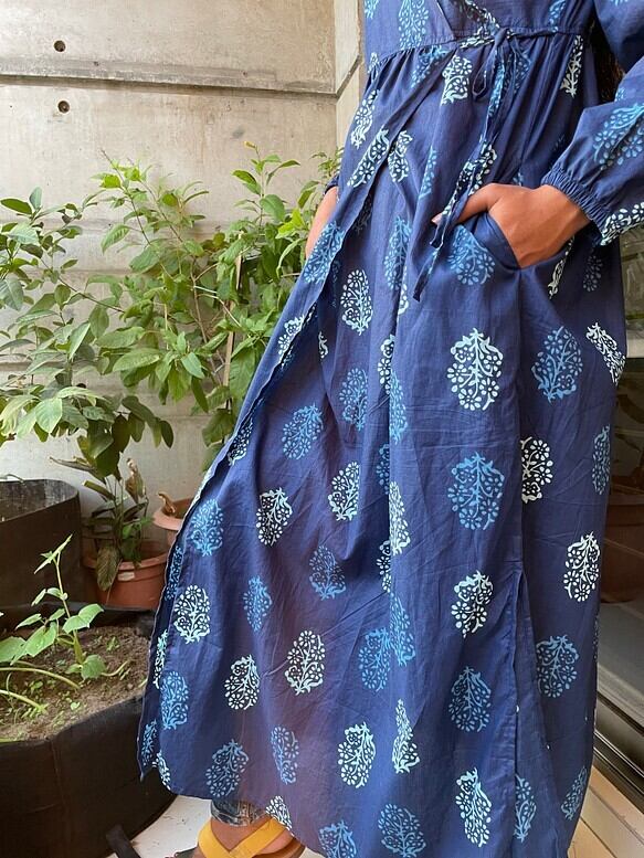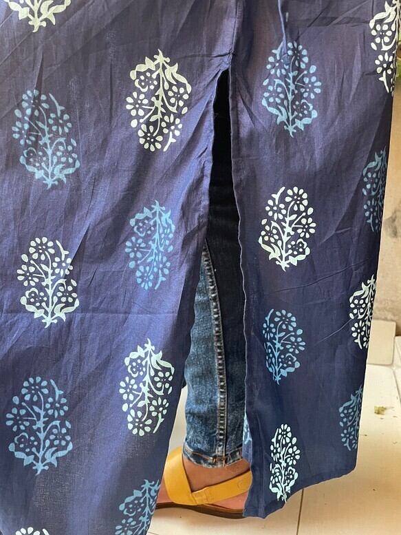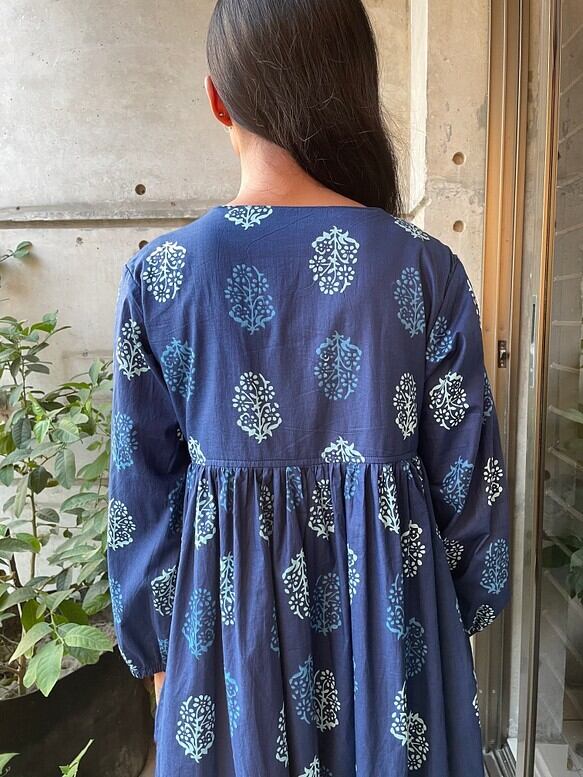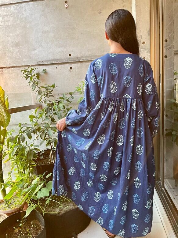 エメラルドグリーン色のインド綿を使ったワンピースです。(単体では透けるので、下にインナーパンツ、デニムなどの着用をお勧めします。)