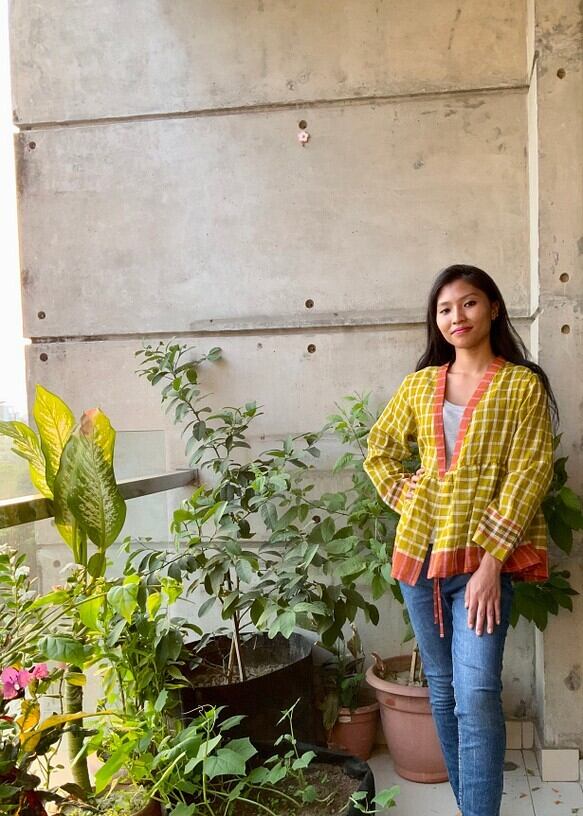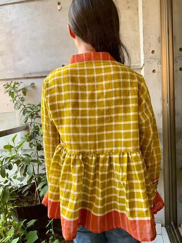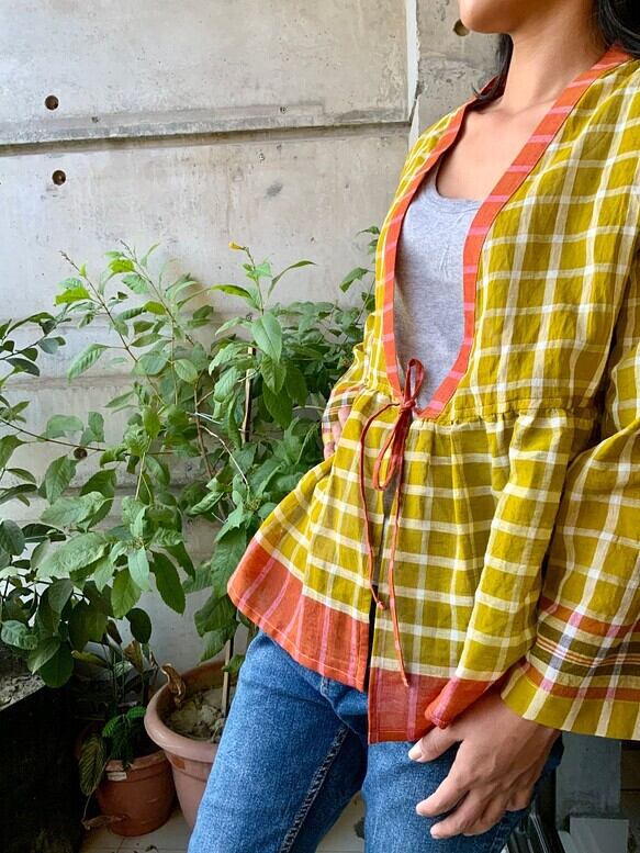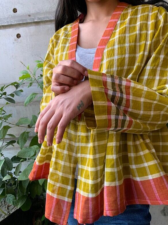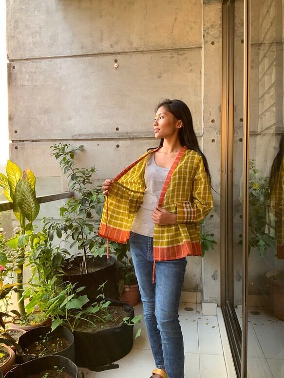 バングラデシュ の、働く人たちの必需品、ガムチャ(手拭い)生地を使った羽織です。