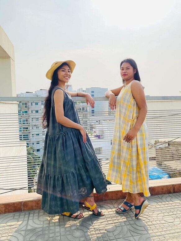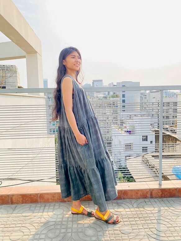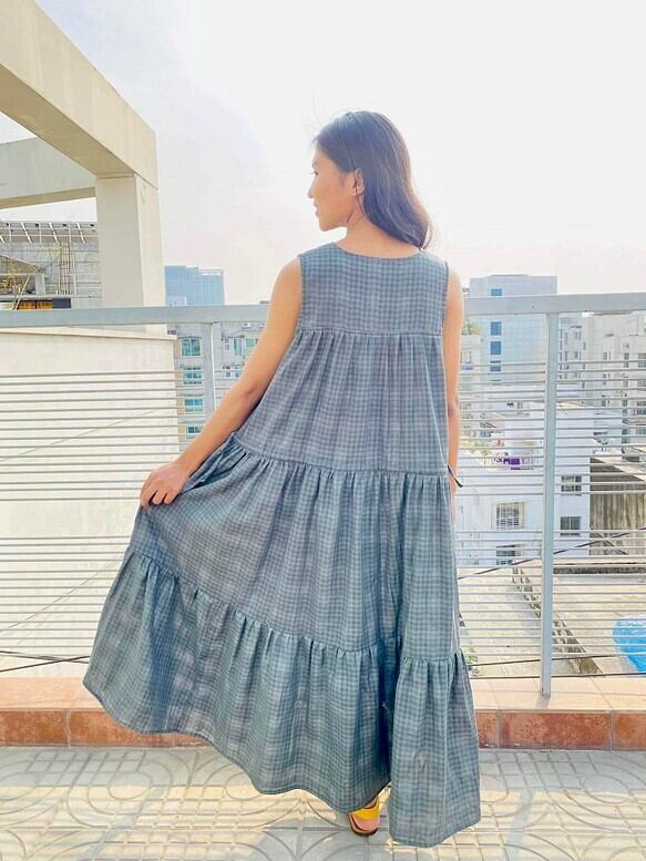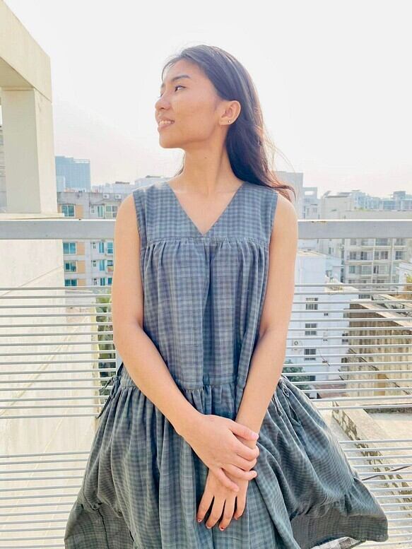<新作 3点限定>ハイカウントコットンVネックティアードワンピース