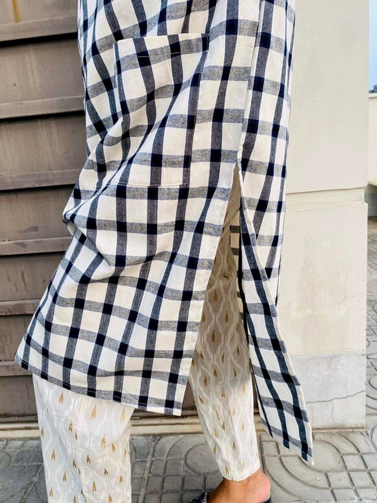 サイドスリットが長めに入っているためお持ちのパンツと合わせてご着用ください。