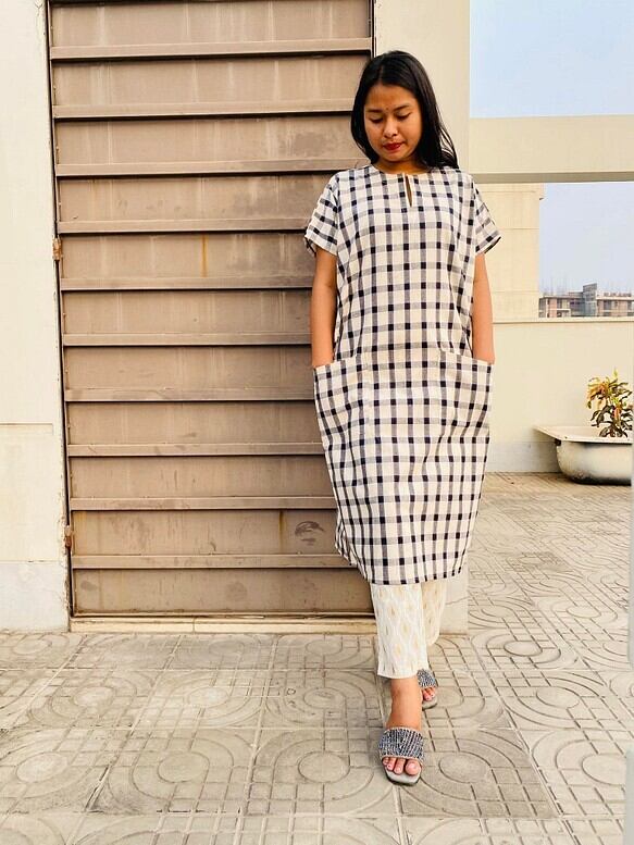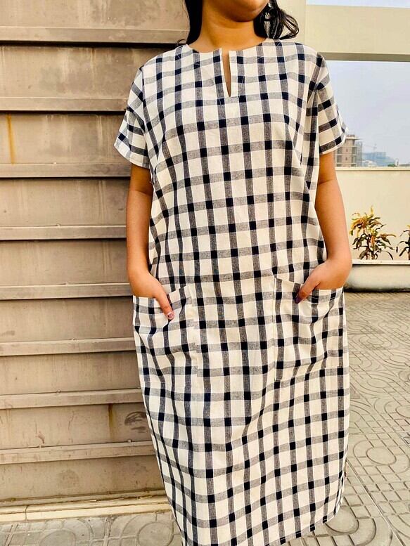 しっかり厚みのあるコットンを利用してお作りしましたカフタンワンピースです。