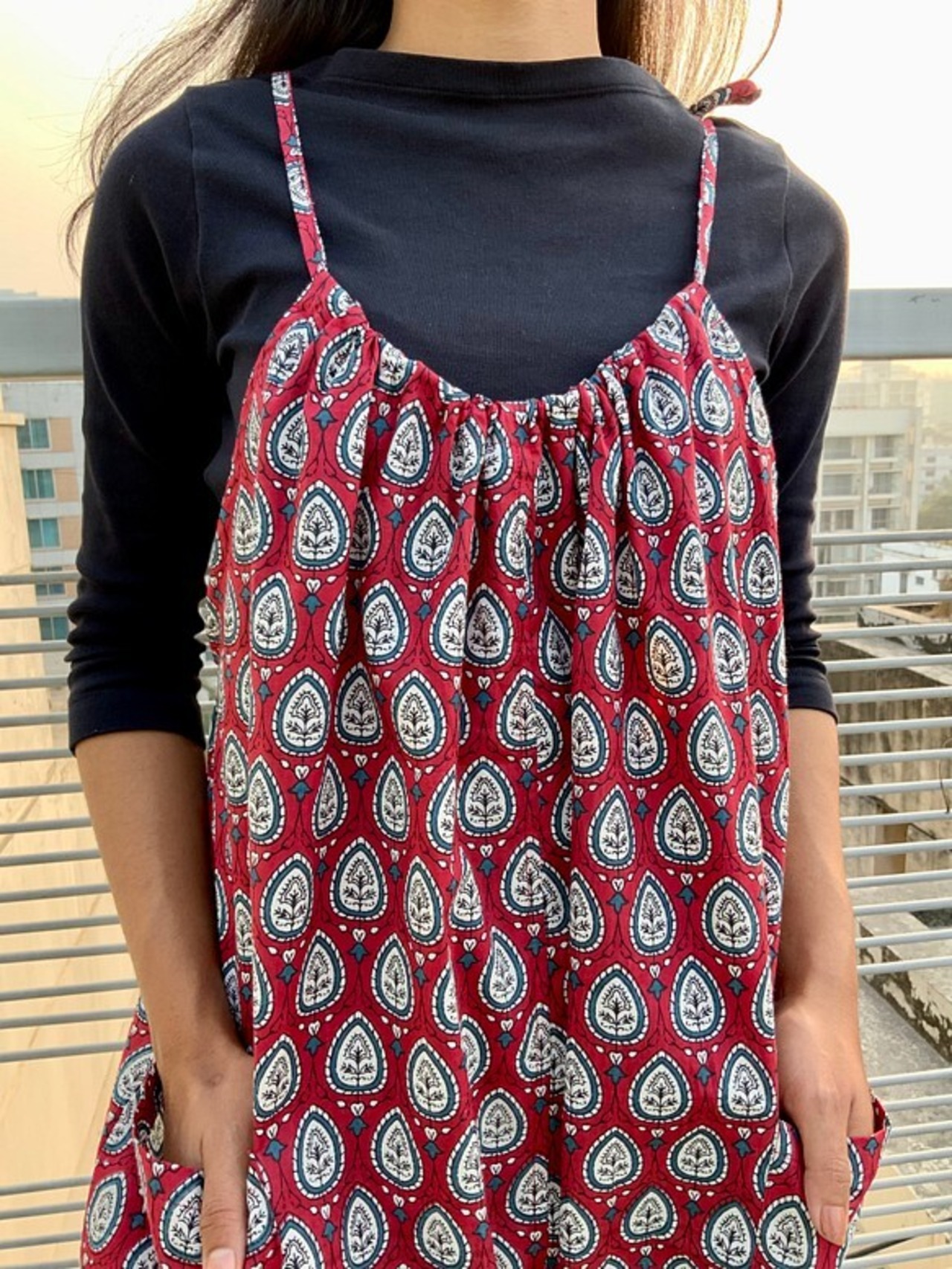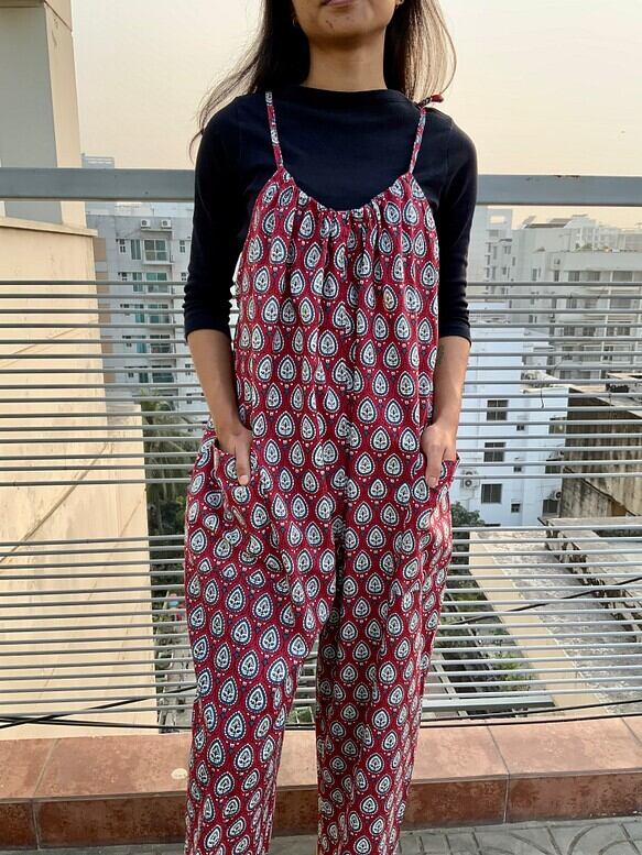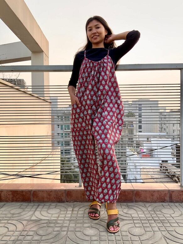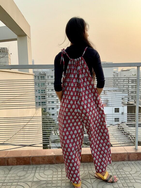 北インドのジョイプールコットン(インド綿)生地で楽チンに涼しく穿いていただけるサロペットをつくりました!