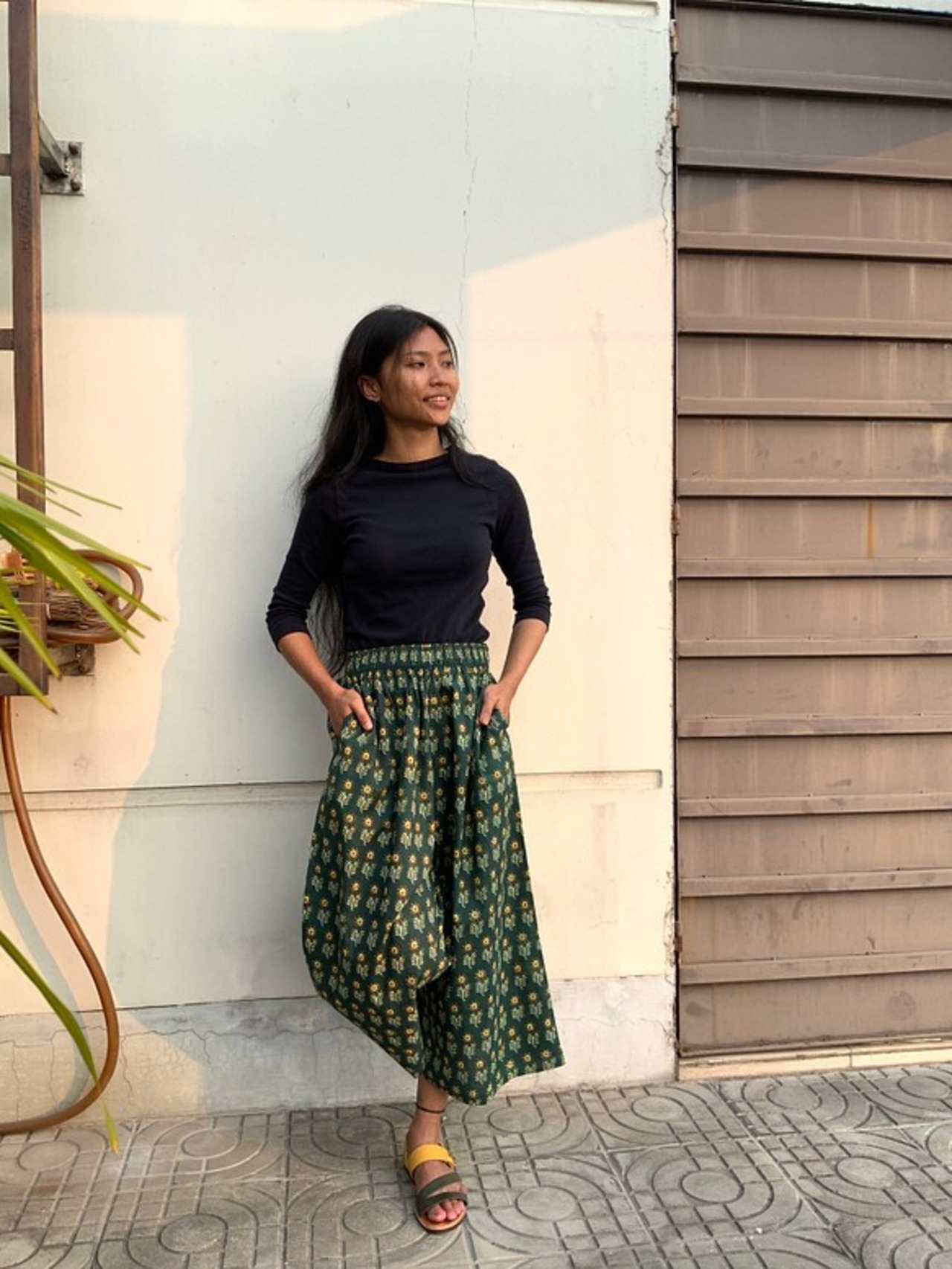 北インドのジョイプールコットン(インド綿)生地で楽チンに履いていただけるけどキレイに見えるワイドパンツを作りました!