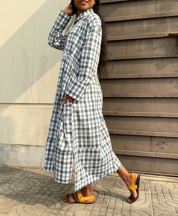 コットン100パーセントの程よい厚みをもつコットンでおつくりしたワンピースです。