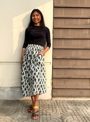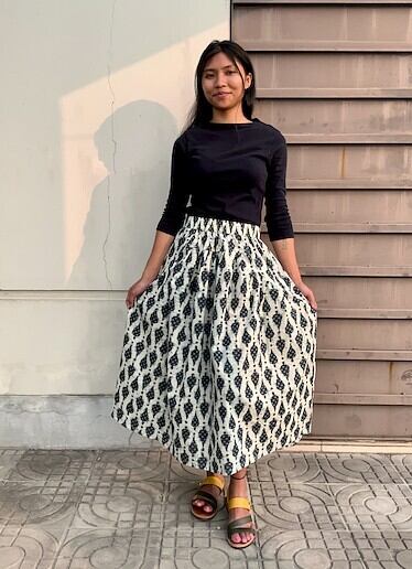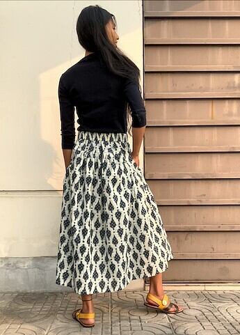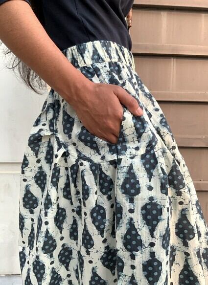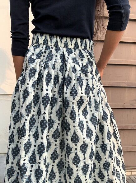 インド産のジョイプールコットン生地をたっぷり使い、マキシ丈のスカートを作りました。
